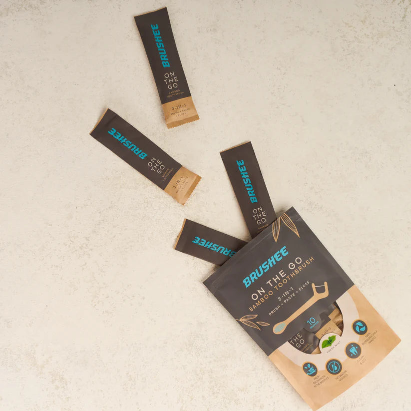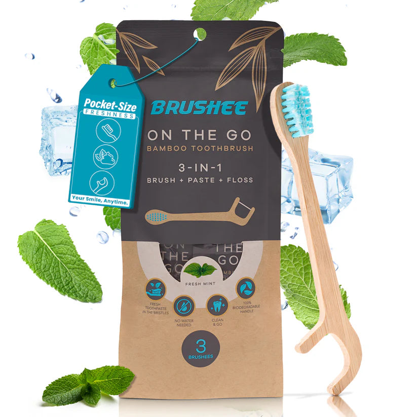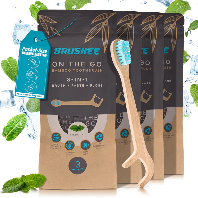 Brushee is a pocket-sized toothbrush with toothpaste in the bristles, a toothpick inside, and a floss at the end, for quick & easy oral care on-the-go.